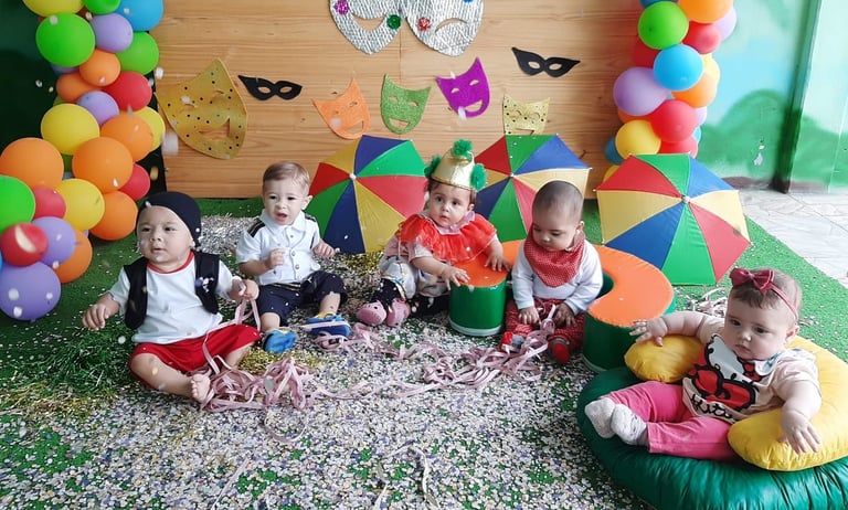 Através de brincadeiras, músicas, histórias e estímulos sensoriais, favorecemos o desenvolvimento motor, cognitivo e afetivo dos bebês.
